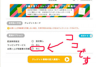 3.支払い方法をクレジットカードにして 「配送オプション」欄で 「お買い上げ明細票の同梱」を 「なし」にする。