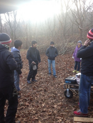 足もとには霜がおりてますが 寒さにめげず みんなで元気に朝礼! 持ち場にわかれて、 体を動かしはじめると 日が昇ってきたこともあり ポカポカしてきます。