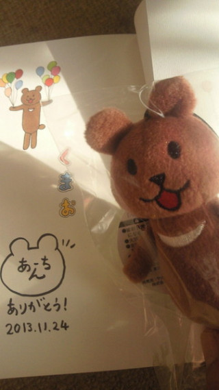 ーーーーーーーーーーーーーー ほぼにちは! とどきましたー!!! まだ本文は読んでいないのですが マスコットのくまおがちょうちょう かわいかった〜〜〜〜!!!! これはすごくすてき! と思ったのでとりいそぎメールしました。 なににつけようかな。