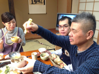 本日は名作「マーラーカオ」。 蒸し器(もしくはでかい鍋)があればできる 蒸しパン。 失敗知らずの蒸しパン。 しかし、作ったはいいけど、 全部はたべられないので、 キッチンのそばで 会議をしている人たちを襲撃し、 おやつを食べてもらうことにしました。
