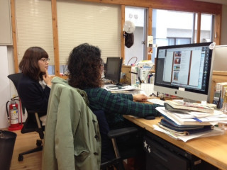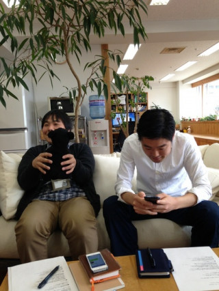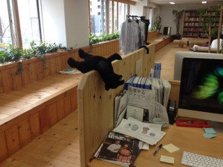新人ズは、スガノさんに 「ただいま製作中の投稿」という 宿題をいただき、 iPhone片手に社内をうろうろ。 わたしは自分の 机周りのみなさまを紹介いたします。