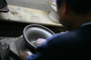 この季節、土楽さんでは 職人の方々が 凍るような水と土で、 ひとつひとつ、 ろくろを使って作ってくださってます。