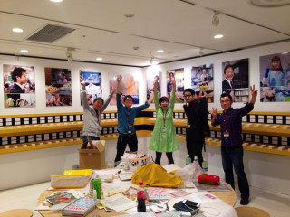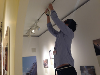 会場の設営は8割がた終えまして今はいろんなところを掃除したり、整理したりしてます。アートディレクターぐっさんは各展示の照明の調整に入った模様。さすがは芸術大学の照明学科卒業です。それぞれの展示空間を見やすく、いい雰囲気に仕上げていきます。