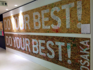 おはようございます。きのうに引き続き、「はたらきたい展。FUKUOKA」の設営現場よりテキスト中継です。あさ、現場に着いたら東京&大阪のテーブルが会場の外壁に展示されていました!どーん。でかい!どちらもご来場くださったみなさんのメッセージでいっぱいです。これ、読んでいてほんとに飽きないんですが、今回はなんと、貼ってあるのが会場の「外壁」なんで入場しなくても見られるんです。これを見に来るだけでもおもしろいのであす以降、福岡パルコの8階に、ぜひー。