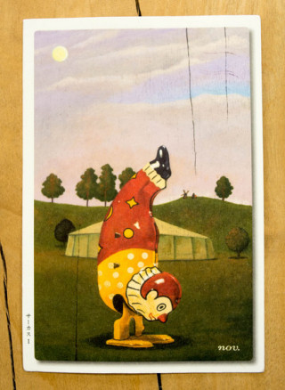 「土屋耕一さんの食・顔・文字。」「芋たこを食べながら、矢吹申彦さんと、 伊丹さんの話を。」などでたびたび「ほぼ日」に登場してくださっているイラストレーターの矢吹申彦(やぶきのぶひこ)さん。東京・表参道のちょっと裏手にあるHBギャラリーで個展「板にブリキ」を開かれているというのでうかがってきました。板に描かれた、ブリキのおもちゃ、でもその背景はリアルな風景。クラック(割れ)に見える部分も作品の一部、なんだかマグリットやルソーを思わせるじっさいにはありえない光景、「不思議」にあふれた絵が十数点並んでいるんですよ。(個展のための描きおろしだそう!)ああ、こんな絵が部屋に飾れたら素敵だろうなあ。会期は5月14日(水)まで。11時から19時(最終日は17時)のオープン、入場無料です。みなさまぜひどうぞー!