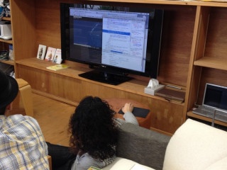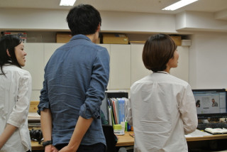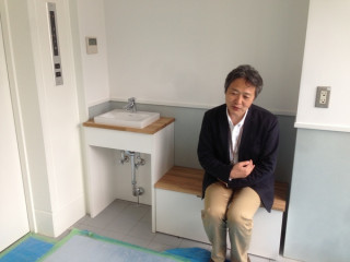 ホソイは診察室の待合席で エア犬をだっこしています。
