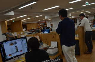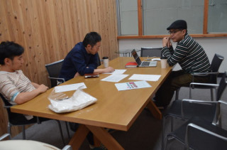 しかし、写真とは反対で、 とある企画の「おもしろの部」だけを 純粋に考えている会議の姿です。 「まず、夢を語ろう」からはじまる、 たいへんに楽しい瞬間をむかえている おじさん、おじさん、若手のおじさん、 です。 これでも。 湧いているわたくしたち。