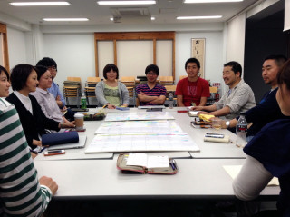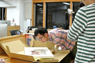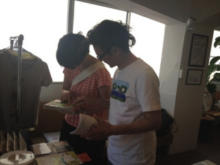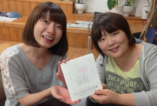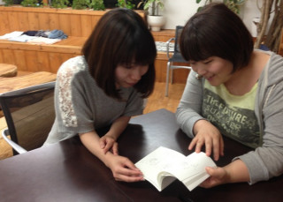 廣瀬と星野は、 ただいま秋元さんの作品のひとつ、 コラージュでつくった冊子を見ては たのしそうに話しています。