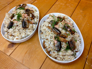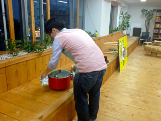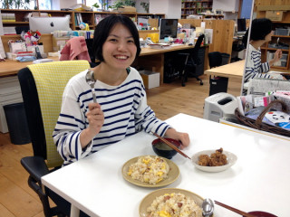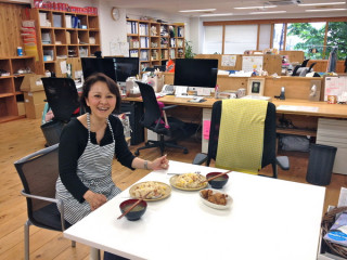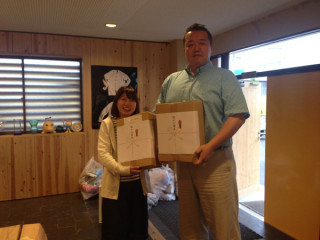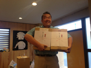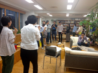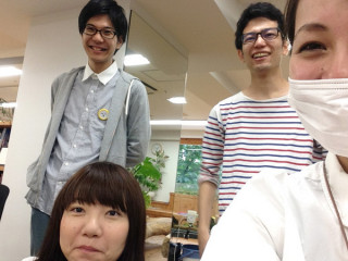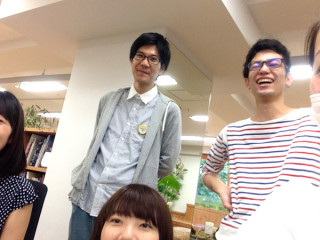 「気仙沼のほぼ日」で ツアー参加者のみなさんと ゲームなどをして盛り上がったのち ずいぶんと経ってから、 産直ストア取材より 本日誕生日の奥野さんが 戻ってきました。 おっくんは車に弱いので 移動しながらの中継は 疲れたのかもしれませんが、 せっかく「ほぼ日」と同じ 誕生日なので、 記念写真を撮りました。