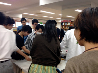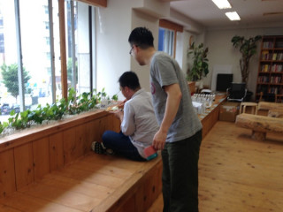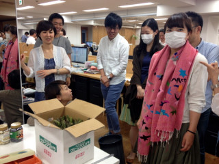弊社の おいしいものがあつまる場所、 カフェテーブルで わっと歓声と拍手が起こりました。