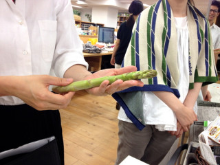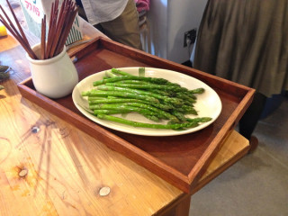 できればすぐに食べたほうがいい、 とのことで、 さっそく が アスパラを持ってキッチンへ。 ささっと焼き蒸しにしてくれました。