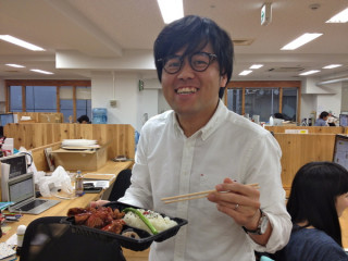 なにごとだ! とかけつけたところ、 中心にいたのは、 新人デザイナーの 。 「北海道にいる母が、 アスパラを送ってくれたんです」