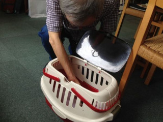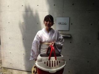 まずがごあいさつと同時に、 お決まりの、 おひざにこねこを、乗せて、と。