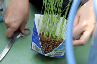 じつはですね‥‥というほどのことでも ないんですけど、 いま、事務所の近くのビルの屋上で 稲を栽培しています。