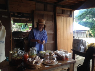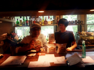 福田さんと山下さんと、 茨城県結城市にあるcafe la famille にきています。 店内には福田さんの絵がたくさん飾ってあるんですよ。