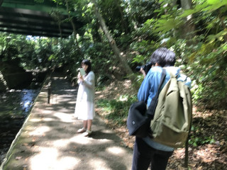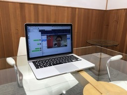 いや、パソコンに向かってですが、 そこには、上海にいる方が 写っています。 そうさ、20世紀の夢、 テレビ電話というやつです。