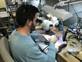 こちらは、貴金属に宝石を埋め込む作業を