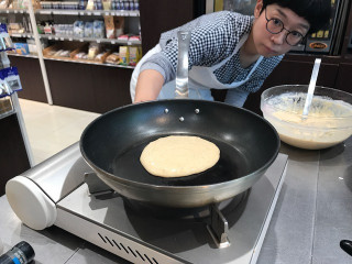 ホットケーキの焼き方講座準備中。