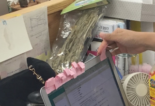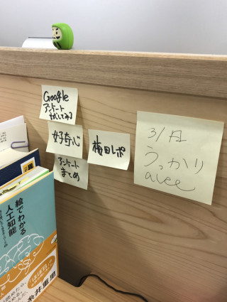 すると、 PCのまわりに付箋がびっしり。 なんだかたいへんなことになっています。 これは‥‥なに?