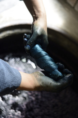 またたびとぶどうの蔓のバッグと同じかたちで、 ぶどうの蔓だけでつくられた 深い茶色のバッグもありました(写真手前)。 こちらは、実はダイヤ柄になるように編まれていて、 使い始めは知っている人だけが気がつくけど、 使い込んでいくと ダイヤ柄が黒っぽく浮き出ててきて、 それはそれは美しそうです。 ぶどう蔓は100年持つというのもすごいですね。
