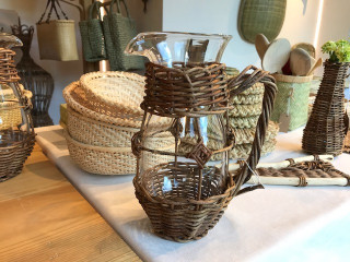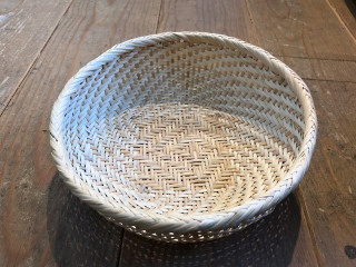 ところでザルやかごをちらりとご紹介。 ザルひとつとっても 定番の蕎麦用のザルから、 お米を研ぐための背が高いザル、 小豆洗い用のザル、 またたびでつくられた白く美しいザルなど いろいろな種類があります。