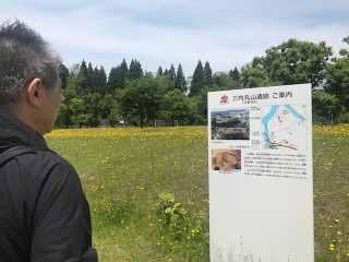 昨日の八戸につづき、そのまま青森に来ました。あったかくて、晴天でございます!社長は遺跡に興味津々。