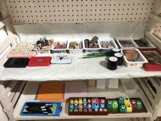 お子さんが来てもたのしいように スタンプやテープやらを使って 自分でいろいろ作れるコーナーも設置。 もちろん、大人の方でもウェルカム。