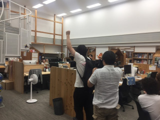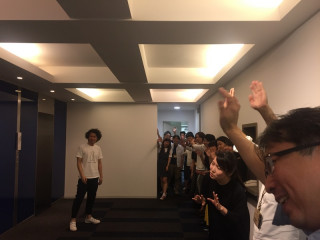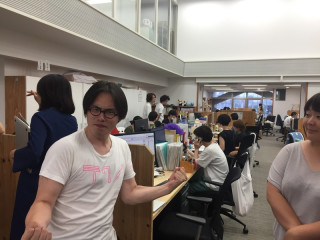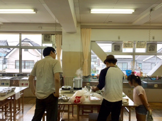 水野仁輔さんといっしょに、 夏休みの小学校にきています。 目的は、水野さんの「カレーの学校」 ‥‥ならぬ、ワークショップ 「カレーの小学校」の見学です。