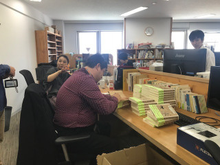 入稿がおくれましたことを 関係者のみなさまにお詫びを。 色校の到着日時に関しまして、 これからメールでご案内をさせていただきます。 また、社内のみなさま、 発売はおそらく12月1日となるでしょう。
