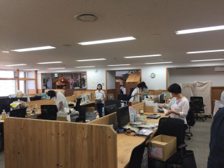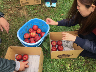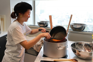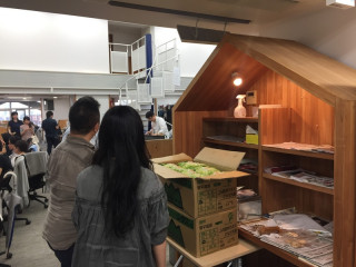 左手に黄色いキッチンカーがあり、 リーダーたちの姿が見えますよ〜。 お昼にカレー、いかがですかー?