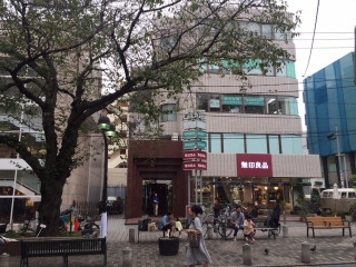 わずかに歩くと、緑道に出て、 「無印良品」があります。 ここで、左にまがります。