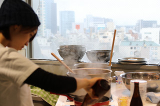 香川のあんこ&からしやさんの 「山清」さんにつくっていただく おしるこに 島根県産の玄米でつくった おもちが入っているんですよ。