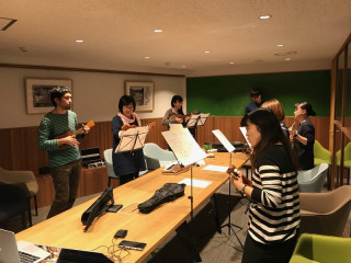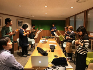 明日にサイトが正式オープンする「生活のたのしみ展」の追い込みで社内がわたわたわたっとしているいま、仕事の手をムリムリとめて、音楽を奏でている人たちがいます。これは、弊社ウクレレ部のみなさんです。週に1回、30分だけ練習しているのですが、明後日の11月2日に、気仙沼にこのコンテンツで歌を届けようと猛練習しています。何事にも全力投球なみなさんです。はたして、上達したでしょうか。ここ3日間のテキスト中継の中で披露されると思うので、ぜひ見てみてくださいね。