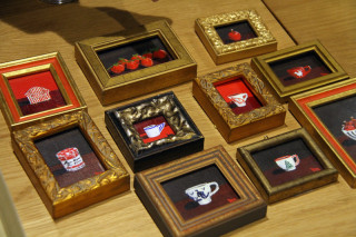 本日、2018年版のほぼ日手帳とほぼ日ホワイトボードカレンダーに作品を提供してくださっている画家の笹尾光彦さんと、おいしくて、しあわせなミーティングをいたしました。どうです。ごらんください。このタルトを。青山のケーキのお店・キルフェボンで今日から期間限定発売となった、笹尾さんとコラボしたタルトであります。(タルトについて、詳しいことは キルフェボンさんのページでどうぞ)バラの香りをまとったベリーのタルトで、本当に、おいしかったです。無言で食べました。ぺろりです。見た目よりも、ずっとあっさりしてます。えっと、これは、11月18日(土)からTOBICHI2で笹尾さんの展覧会をやるんですけど、同じ時期に渋谷のBunkamura Galleryさんとキルフェボンさんでも笹尾さんの個展やイベントがあるのです。せっかくなので、3つの会場を回るとプレゼントがもらえるスタンプラリーをやろうと準備してます。(スタートは、11月18日から)で、今日は、笹尾さんと3者が集まって、その最終の打ち合わせをしたのです。兼、あさって4日に77歳のおたんじょうびを迎える笹尾さんをみんなで、お祝いしたというわけ。いやあ、おいしかった。しあわせでした。笹尾さん、おめでとうございます!もちろん、打ち合わせもちゃんとやって、写真3枚めはTOBICHI2で販売するミニフレームの絵。ちいさいけれど、きちんと油絵です。これが、すごくかわいいです。ほしい!お値段は未定なのですが、比較的、手に入りやすい価格になりそう。どれも1点もので数量限定ですが、どうぞ、お楽しみにしていてくださいね。TOBICHI2での展覧会のことや、18日からはじまるスタンプラリーのことなどイベント全体についてはこちらのページに、詳しく書いてあります。ぜひぜひ、チェックしてみてください!