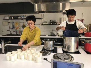 本日は、なかしまさんが会社にいらしております。なにをしていたかといいますと「生活のたのしみ展」のフードトラック・しるこスタンドで提供される「おしるこ」の予行練習をしておりました。当日、鍋はどの大きさにすべきなのかどのくらいで提供できるのか、カップとスプーンは大丈夫か、などなど、きっちり確認いたしました。確認した後で、もちろん「おしるこ」を乗組員でおいしくいただいたのです。まじであったまりました。おいしかった。もう3杯くらい一気に食べたかった。