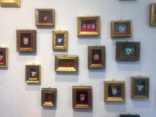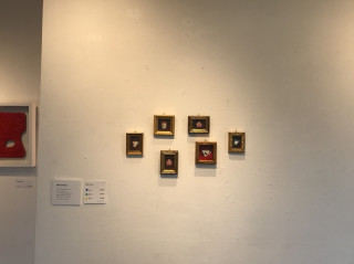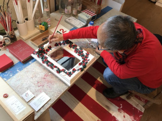 大きな額をつくるときの あまりの部分からつくったという ミニフレームに、 リンゴやトマト、マグカップなどの作品が かわいく収められています。