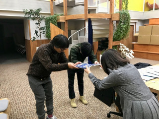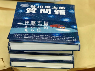 きのう『星空の谷川俊太郎質問箱』の 刷り上がりの5冊が届いて、 まずはこの本の絵を担当した祖敷大輔さんと デザインを担当した プリグラフィックスの清水さんに 手渡しました。