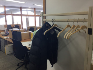 ほら、雪も積もってるだろうし、 交通が乱れる可能性もあるし。 で、いま、もう午前11時を 過ぎてるんですが‥‥いないわー、人が。 みんな、こういうとき、 すぱっと切り替えるわー。 いつもはぎっしりのコート掛けも空き空き。
