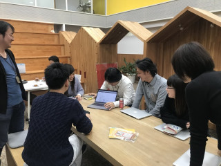 と ソファ席で会議をしていたのですが、