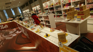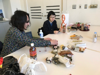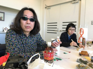 二人が、おやつテーブルにあった フエラムネを口にいれて、