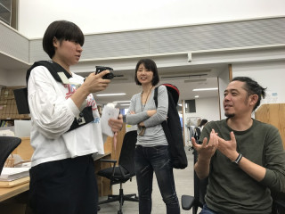 昨晩、へんな道具をもって 現れました。 曰く、手ブレをしないで 撮影できるというウワサの道具。 それをみた さんが、 「あ、現状会社の中の機材で 手持ちカメラで 手ブレをしないようにしたいなら、 iPhoneとiPhone用の スタビライザー(安定化装置) かもしれないですよ。」 と、ひっくり返るようなことを言う。
