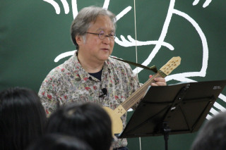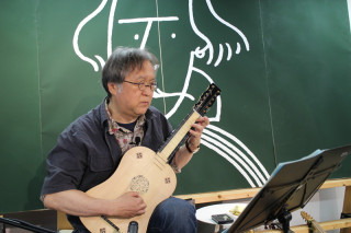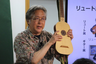 “放課後”は音楽の時間でした。 岡ノ谷さん愛蔵の弦楽器を次々と抱え、 「パヴァーヌとガリアルド」、 「千々の悲しみ」といった、 シェイクスピアの時代の曲を 聴かせてくださいました。