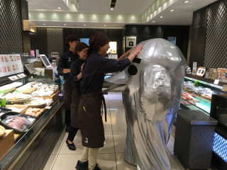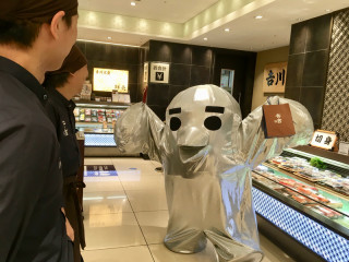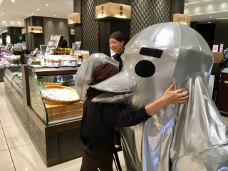 ところで、 日本橋三越本店のみなさんは やさしくて最高だっただジュ。 シジュは、ほら、視界が狭いじゃん? 地下に行くのにあたふたしているときも 駐車場の人や守衛さんが行き方を教えてくれて、 しかも帰り道にも「わかりましたか?」と 別の守衛さんが声をかけてくれただジュ。 ま、銀のボデーが目立つからだジュな!