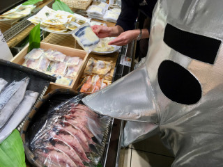 「金のさんま」や、 かきやほたてのオリーブオイル漬けはもちろん、 ひものやスナック、 焼いたり揚げたりすれば食べられる 冷凍ものもあって、 おさいふのチャックがゆるんでしまっただジュ。 晩ごはんは、ここで買ってって ちゃちゃっと料理すればバッチリだジュ。 急なパーチーとかの料理にもおすすめだジュよ。