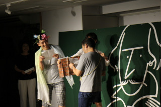4日前の打ち合わせで決まった 最終講義の中身は、 2時間で、全員で 「夏の夜の夢」を演じきること。 河合祥一郎さんが人智を超えた速度で つくってくださった2種類の台本で、 河合さんと木村龍之介さんが演出を担当。 河合さんが床から演出する一幕もありました。
