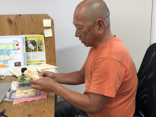 ところでね、 「野球であそぼう」は、 ゲーム終了後にフィールドに降りて、 うきうきできる時間があるのですが、 そのまえに、参加者みんなで 記念撮影をするですよ。 そのときの脚立カメラマンは です。 なんか、いい仕事だなーとおもって 毎年写真をとってしまう。 |