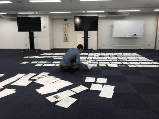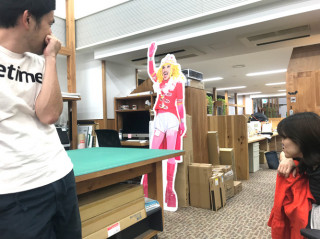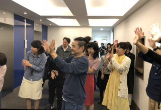 え〜、なに〜聞いてないよ〜、っていう声も ちらほら聞こえる中、みんなぞろぞろ、 社内のあちらこちらから集まってきました。