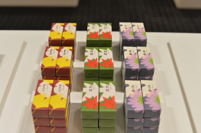 これまで赤坂店の売り場は1階だったのですが、 こんどの売り場は2階になりました。 おなじみの羊羹から季節の生菓子まで、 これまでのとらやのおいしいものが 変わらず並んでいます。 赤坂店限定のお菓子もありますよ。