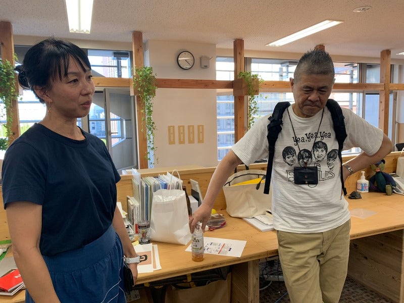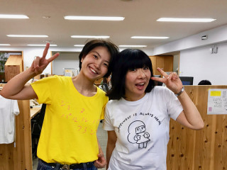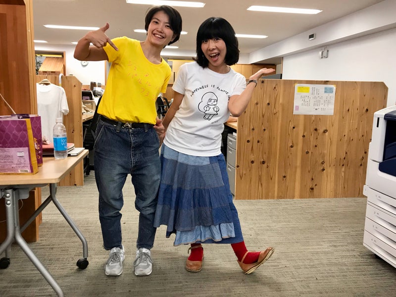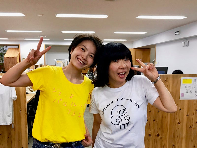が着てる 黄色いかわゆるTシャツは、 レ・ロマネスクさんのグッズですよ。 多分今日これも販売するのかな? みんなでおっくんのギターを見にいきましょう〜。 |
