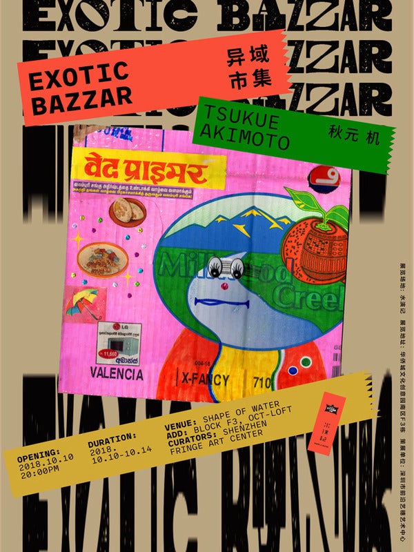 ●深? TSUKUE AKIMOTO "?域市集 / EXOTIC BAZZAR" 会期: 2018.10.10-10.14 会場: Shape of Water(Block F3, OCT-LOFT) 住所: Kaiping St, HuaQiaoCheng, Nanshan Qu, Shenzhen Shi, Guangdong Sheng 主催: Shenzhen Fringe Art Center http://www.octloft.cn/about/oct-loft/